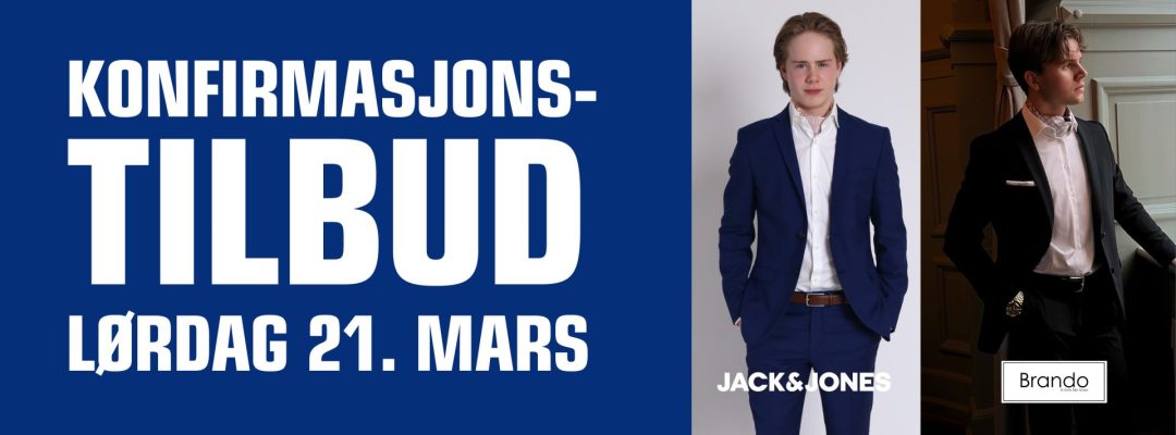 Konfirmasjonstilbud Lørdag 21.03.2026 står Brando og Jack & Jones klare til å hjelpe deg med å bli klar til konfirmasjonen.…